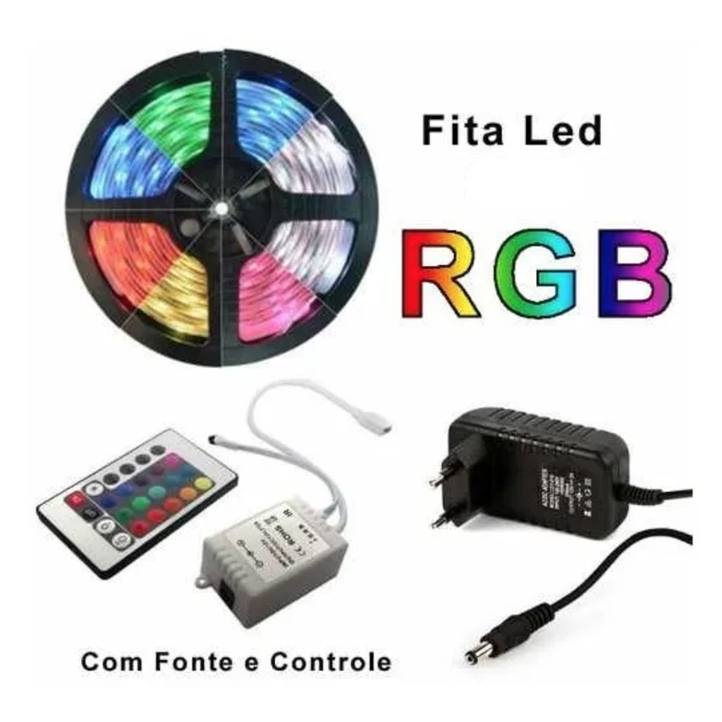 KIT 5 10 20 metros de Fita Led 5050 Rgb + Fonte + Controle 44 Tecla Decoração Quarto SANCA TV