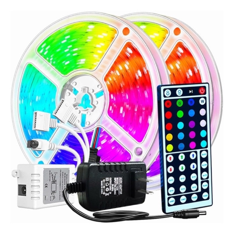 Kit 10 Metros Fita De Led RGB 5050 Ip20 16 Cores + Controle De 44 Teclas + Fonte Bivolt Sanca Gesso Quarto Gamer Decoração Colorida