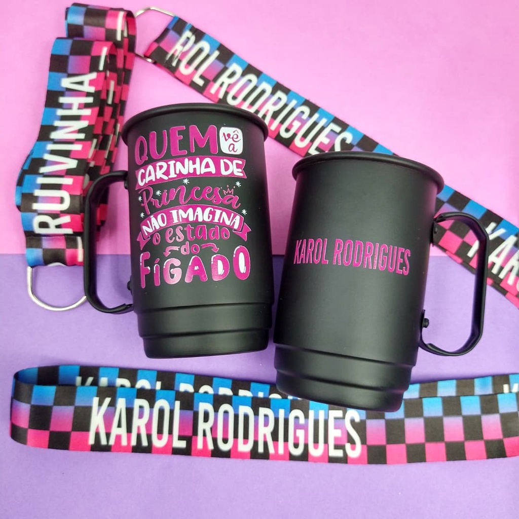 Caneca de alumínio Personalizada com tirante / Caneca com tirante / Quem vê carinha de princesa não imagina o estado