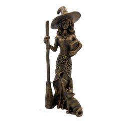 Estatua De Bruxa Com Gato E Vassoura Wicca Wiccaa 20cm