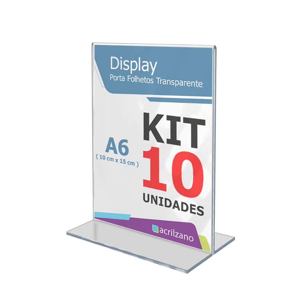 Display Acrilico A6 Kit 10pç 10x15 A6 T Invertido Folheto