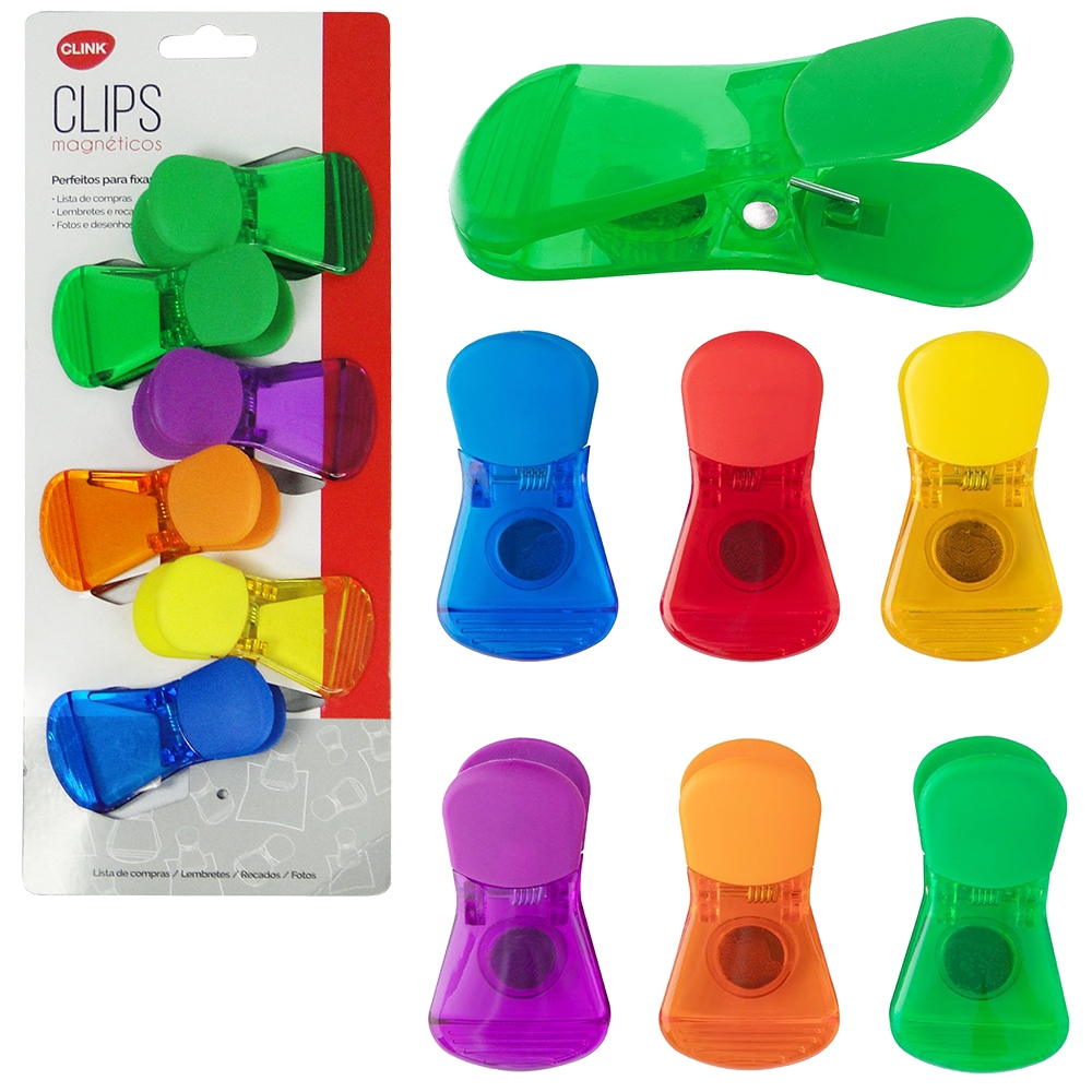 Kit Prendedores Magnético Ímã para Geladeira C/6 Colorido