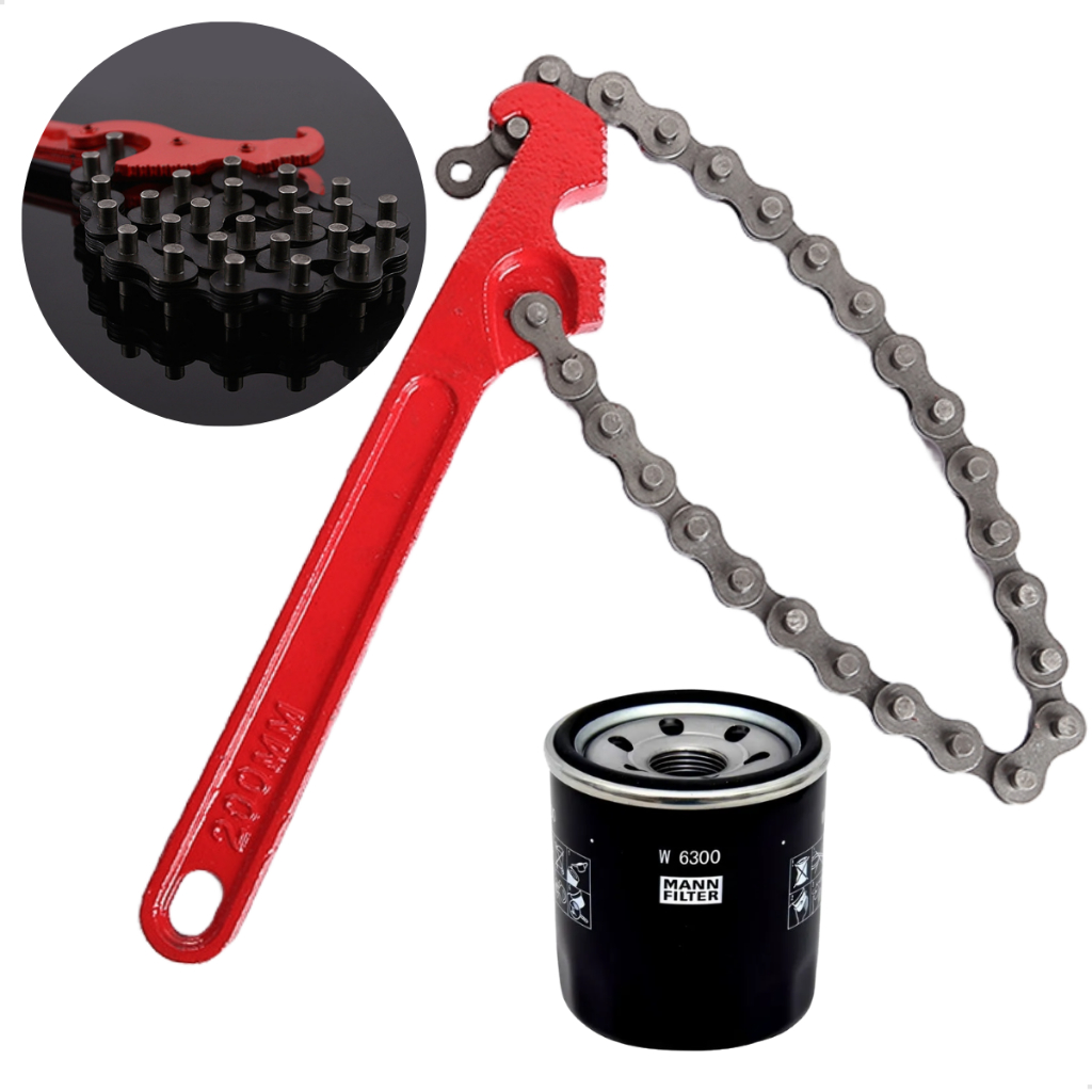 Chave Corrente Para Retirar Filtro De Óleo Saca Troca Tubos Universal Com Corrente