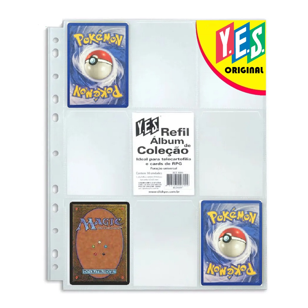 Kit com 10 Folhas para Cards e Cartas para fichário pasta Álbum argola 11 Furos 9 Bolsos Pokémon Magic Yugioh RPG Cardgame Figurinhas Coleção Colecionável Kpop Futebol copa do mundo bts black pink dragon ball naruto DIGIMON ONE PIECE