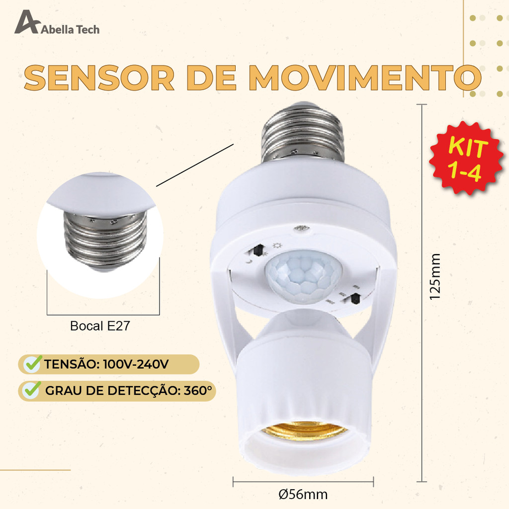 Kit 4 Sensor De Presença Pra Lampada C/ Soquete E27 Bocal Fotocélula Automação