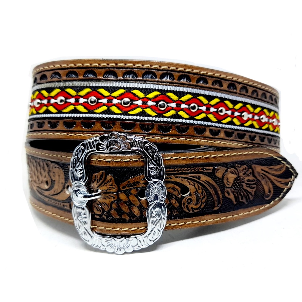 Cinto country cowboy couro Fivela MULADEIRO com detalhes em desenho 3D - R-781