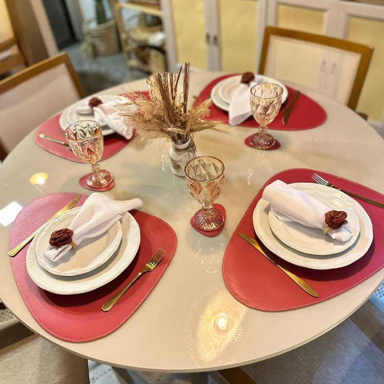 Jogo Americano Kit Sousplat Organico Dupla Face Couro Sintetico Costurado Mesa Posta