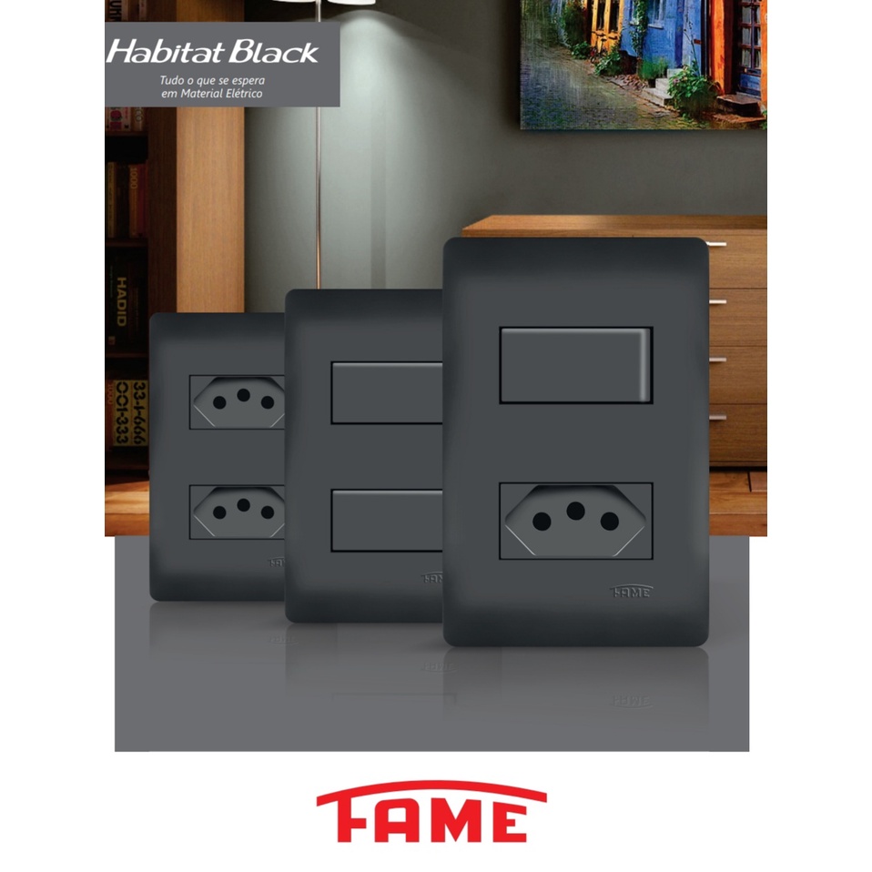 Conjunto de tomada, interruptor, Fame Habitat Black