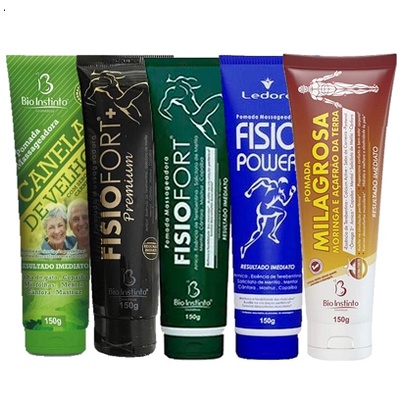 Kit 5 Pomadas Fisiofort + Premium + Milagrosa + Canela de Velho + Fisio Power - Bio Instinto
