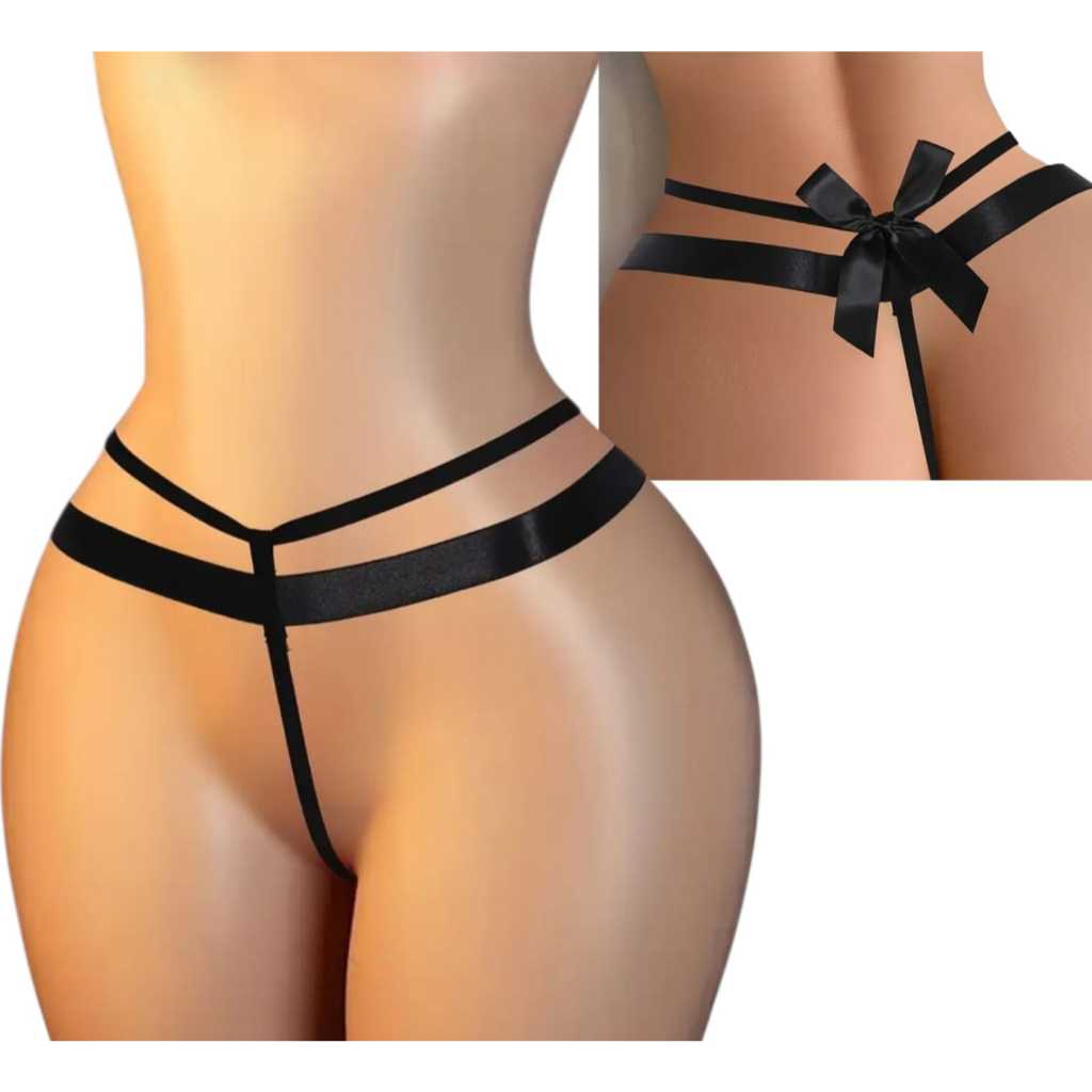 Calcinha fio dental feminina com laço luxo sensual romântica provocante ousada 3011
