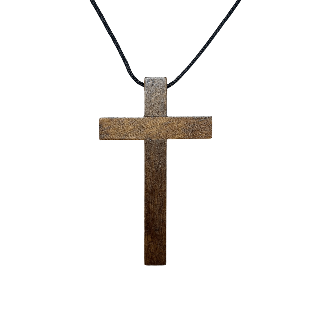 Cruz Em Madeira No Cordão Grosso 7,5 Cm