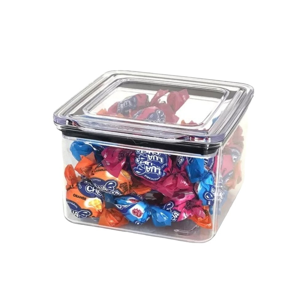 Kit 3 Potes 480 ml Herméticos Acrílico Empilháveis Quadrado Resistente Cozinha Organizador Armário Porta Mantimentos com vedação borracha