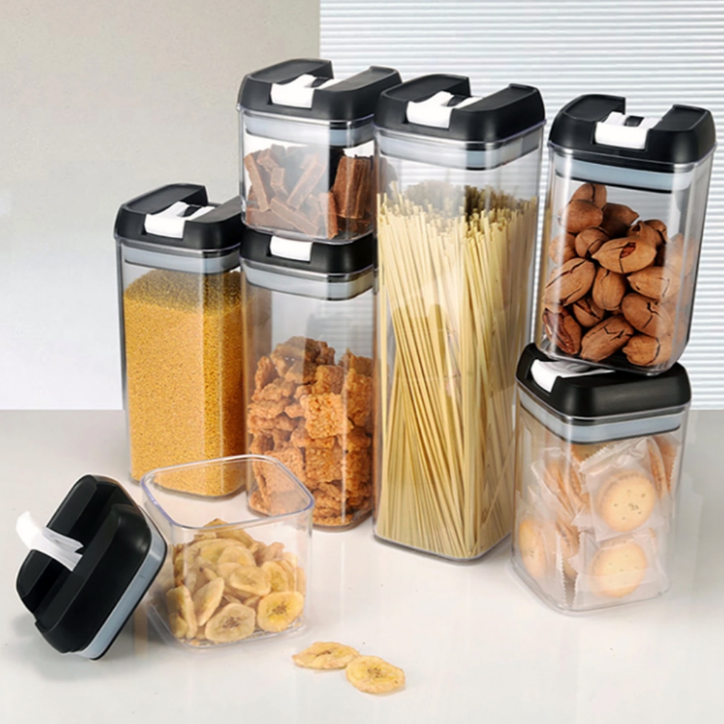 Kit Potes Herméticos Acrílico Empilháveis Quadrado Resistente Cozinha Dispensa
