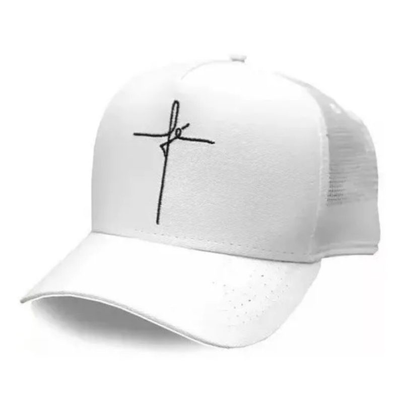 Boné Aba Curva Fé Trucker Snapback Fita Ajustável Unissex Preto Masculino Feminino