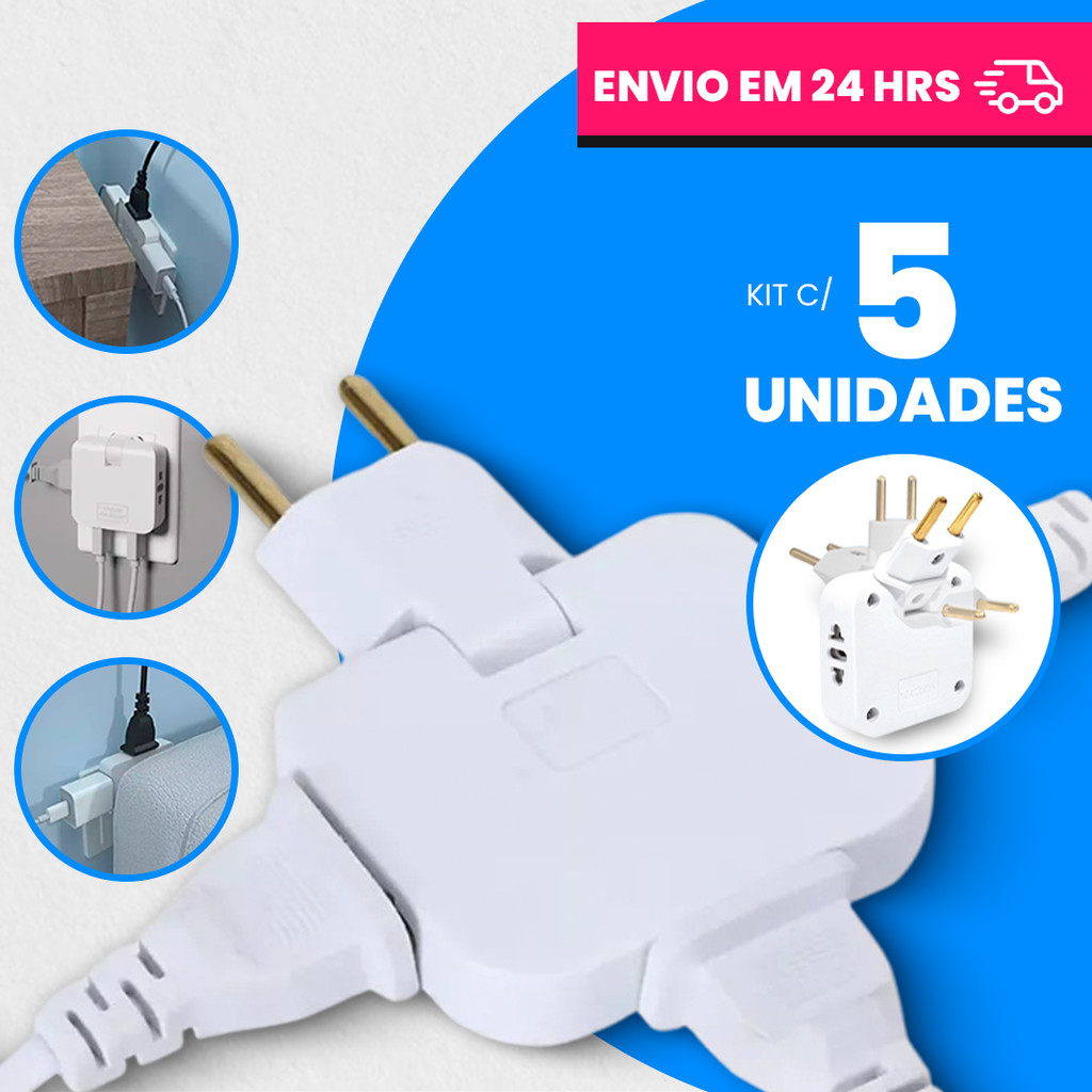 kit 5 Adaptador Tomada Dobravel Articulado benjamin 10A Resistente Bivolt universal resistente T para casa
