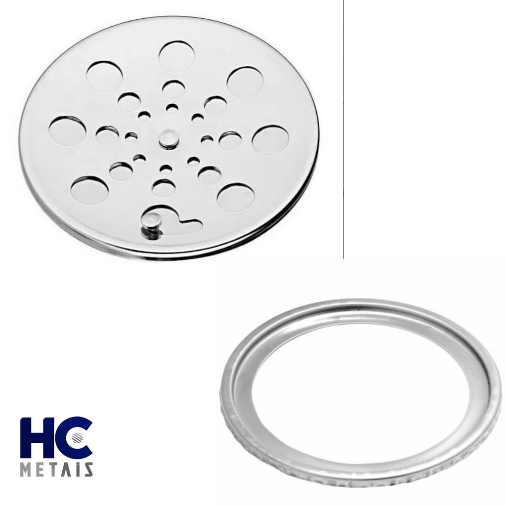Ralo Tampa Grelha Inox Para Banheiro ou Area Gourmet Redondo 10x10 Com Fecho E Com Caixilho