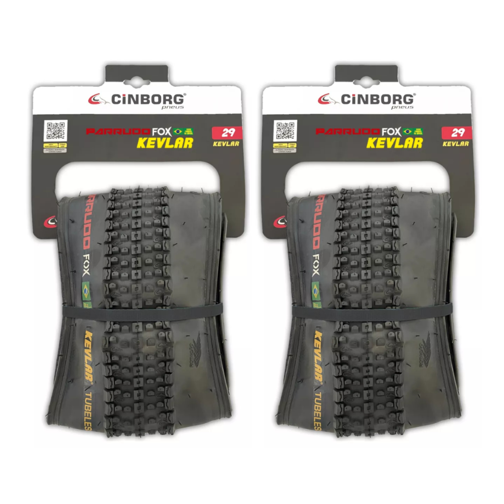 Par de Pneus Aro 29x2.10 Bike Parrudo Fox Cinborg + 2 Camara de Ar 29 Bico Fino Presta Pirelli