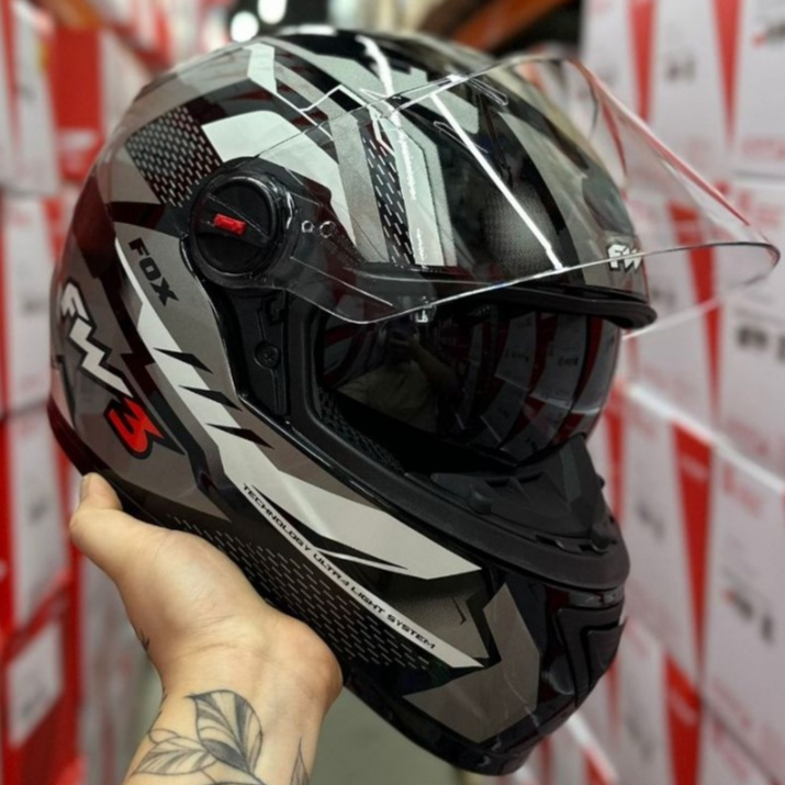 Capacete FW3 GTX FOX Grafite Com Óculos Interno