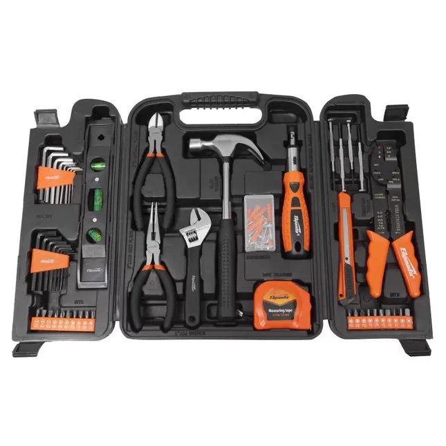 Maleta de Ferramentas Kit 129 Peças Essenciais para Casa 123 Útil Chaves Alicates Martelo Nível Estilete Trena