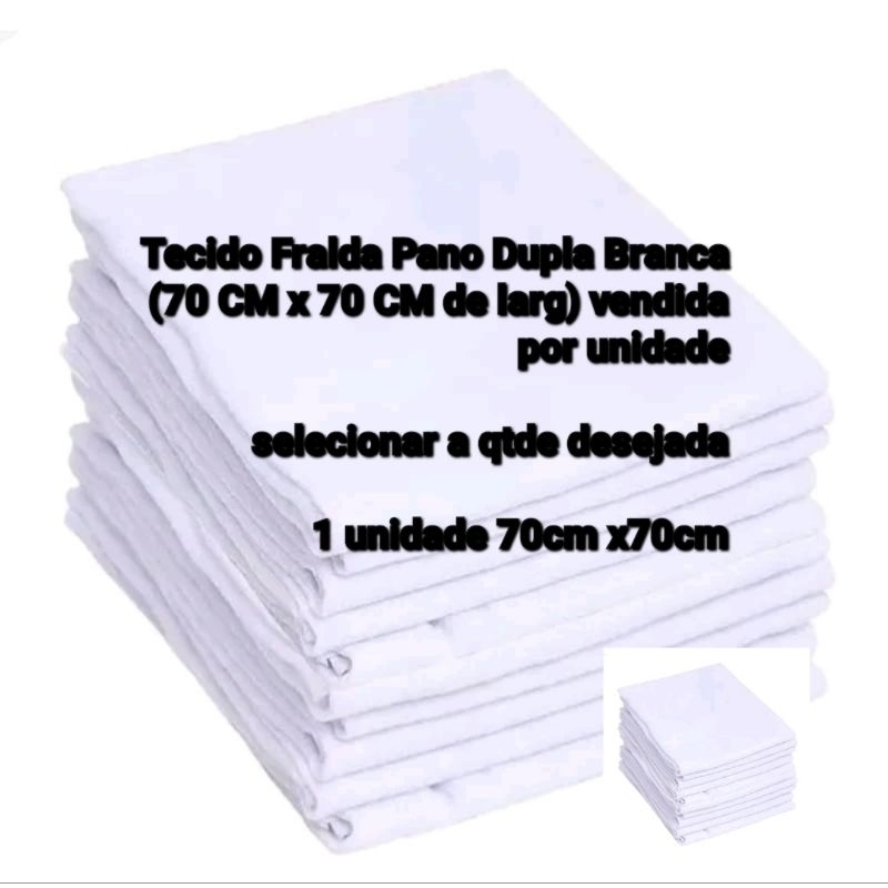 Tecido Fralda Pano Dupla Branca 100% ALGODÃO (vendida por unidade no tamanho 70 CM x 70 CM de largura)Os tecidos avançados da Minasrey, oferecem uma sensação única de conforto e flexibilidade para as crianças, sem deixar de lado a elegância e o estilo.