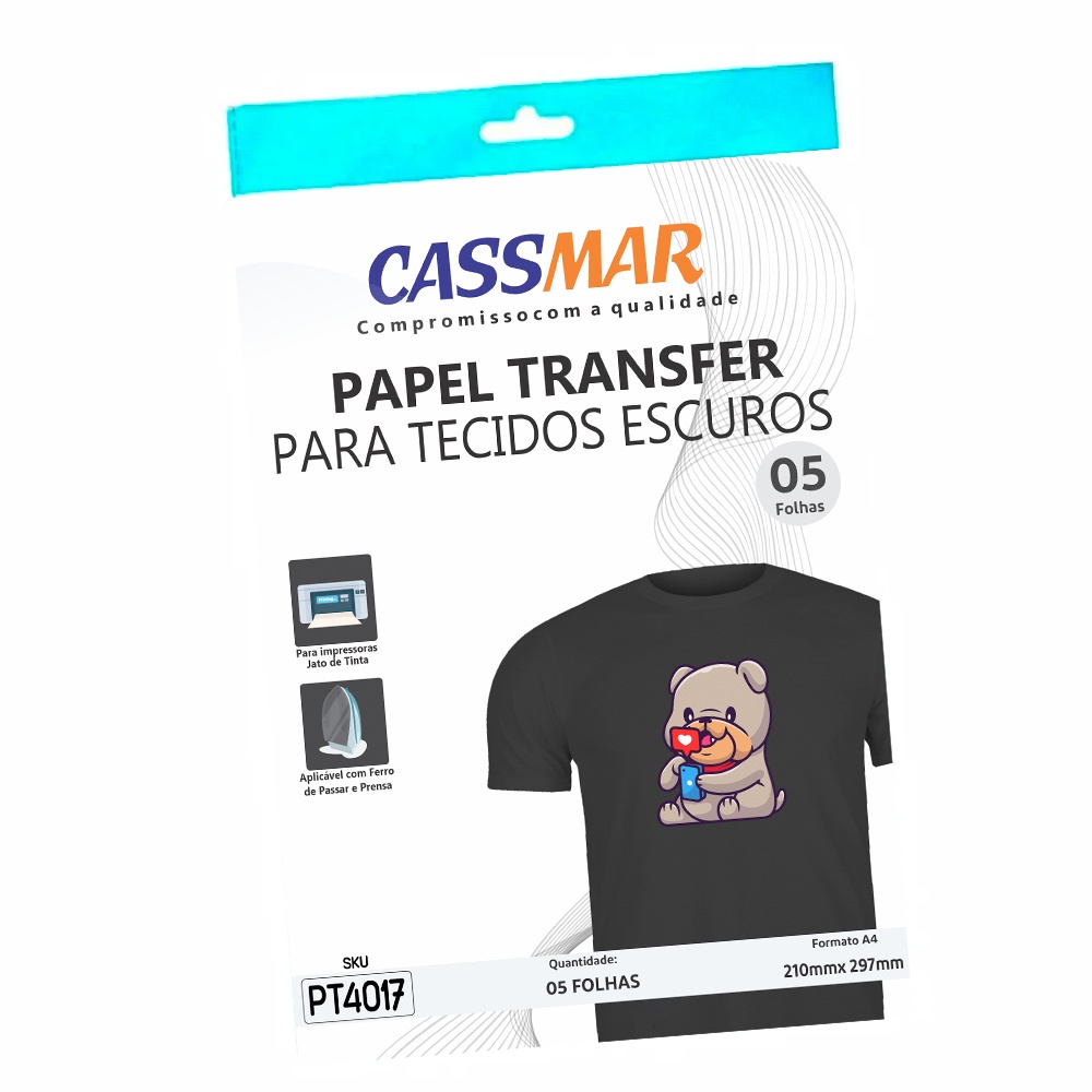 Papel Transfer Jato De Tinta A4 Tecidos Escuros 150g/m² 5 fls Cassmar