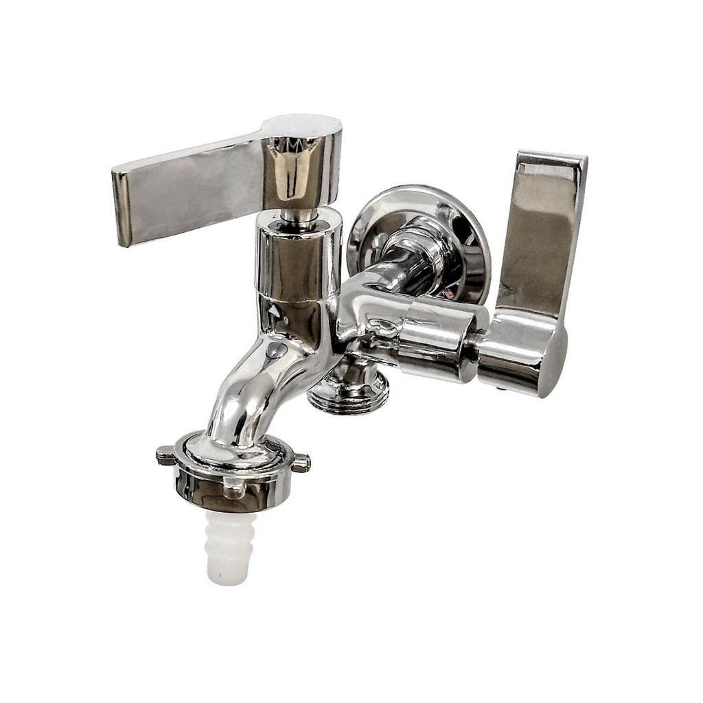 Torneira Tanque Maquina de Lavar 2 Saídas Metal Cromado 1/4 Volta Jardim - Dazie Metais