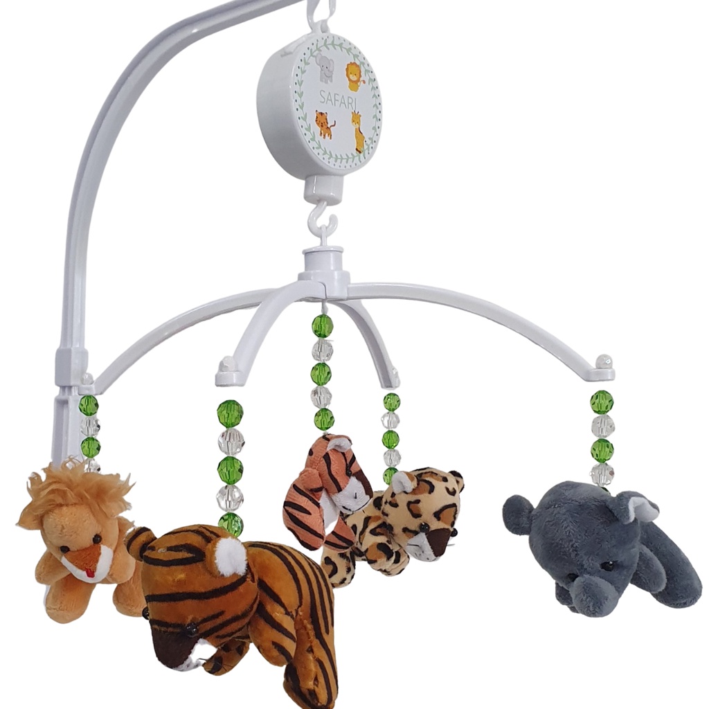 Mobile Musical Giratório para Berço Safari com Nome do Bebê
