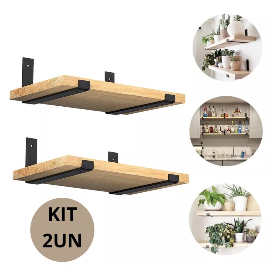 Kit 2 prateleiras preta de madeira com mao francesa invertida estilo industrial prateleira
