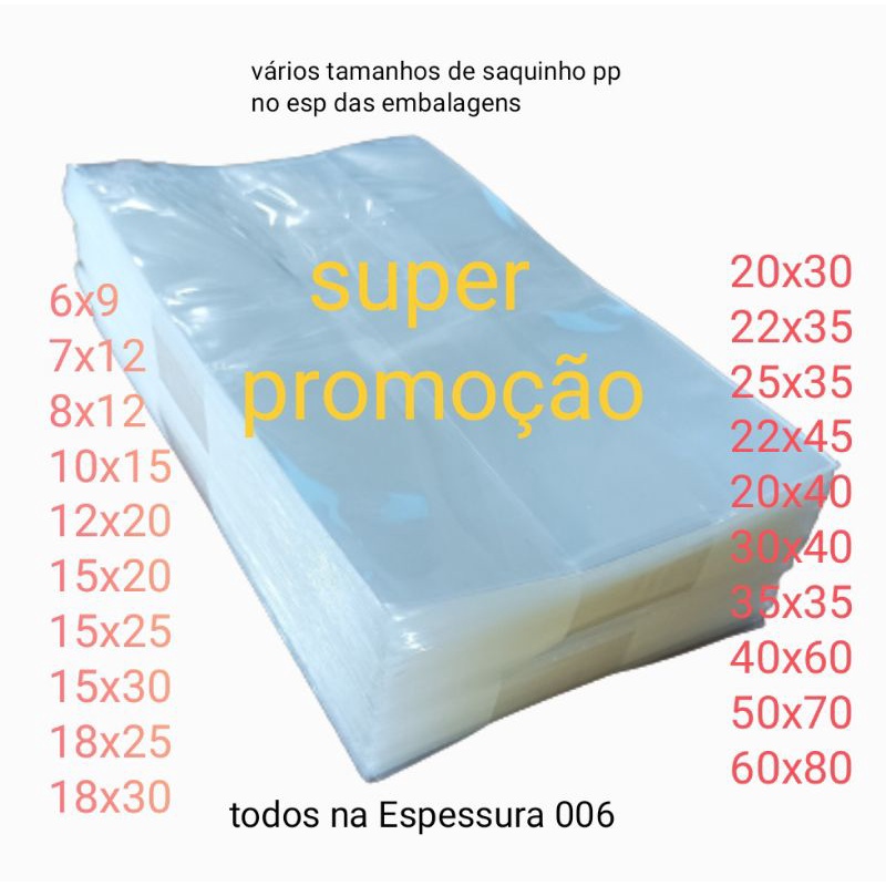 saco cristal transparente pp (1000g 1kg) espessura 006 varias medidas plástico reforçado