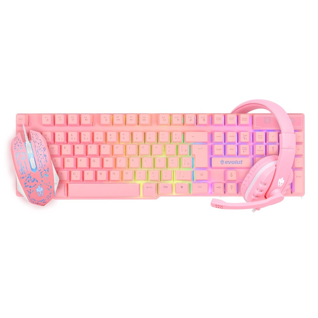 Kit Gamer Rosa Teclado Semi Mecânico Mouse e Headset LED RGB Evolut EG53