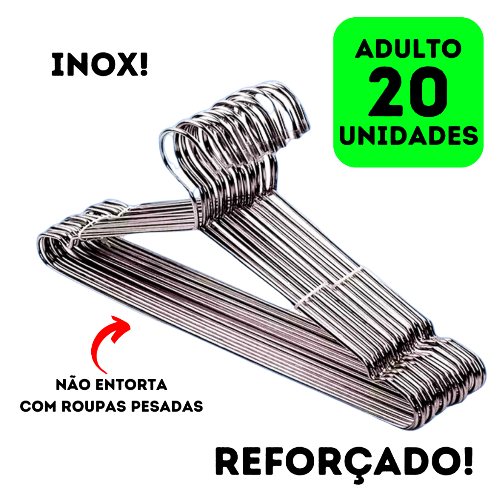 Kit 20 Cabides Para Roupas Cabideiro Organizador Calças Adulto Cabide inox com antideslizante