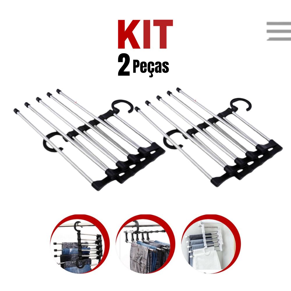 Kit Cabide 2 Peças Multifuncional para Calças de Inox com 5 Divisórias Cabide Mágico