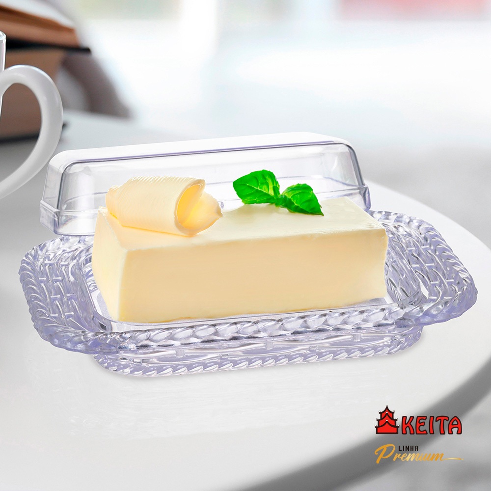 Manteigueira Porta Manteiga Decorada Cristal Acrílico Transparente Premium