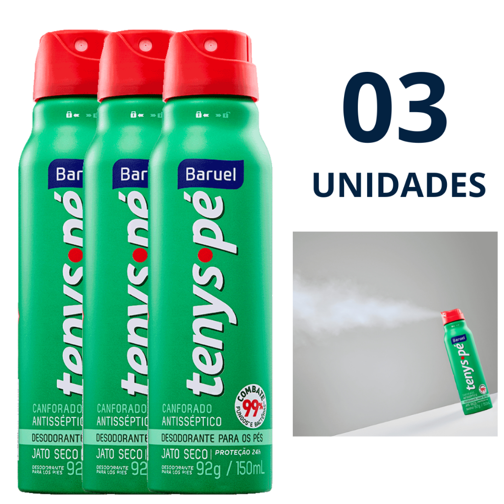 Kit 03un Desodorante para pés Tenys Pé Spray Jato Seco Original Baruel 150ml/92g