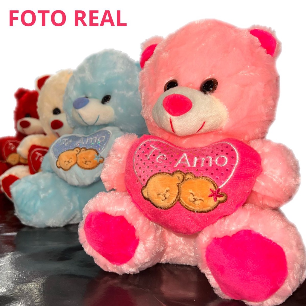 Urso de pelúcia 25 cm Ursinho Peludo Coração Macio Selo Imetro p/ Cestas Presentes Estampa Maquina de Bichinhos