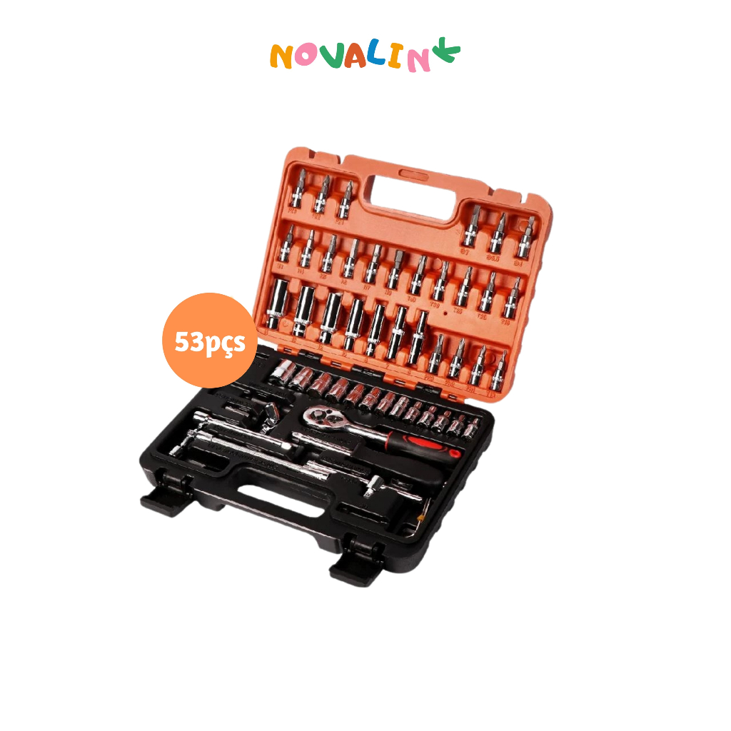 Kit Jogo 53 Peças de Soquetes e Catraca