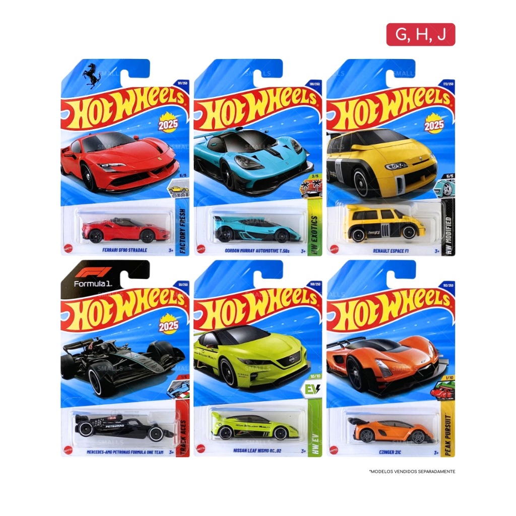 Carrinho Hot Wheels 2025 Original Mattel Miniaturas 1:64 LOTE J K Ferrari Fórmula 1 Porsche Mercedes Benz Ford