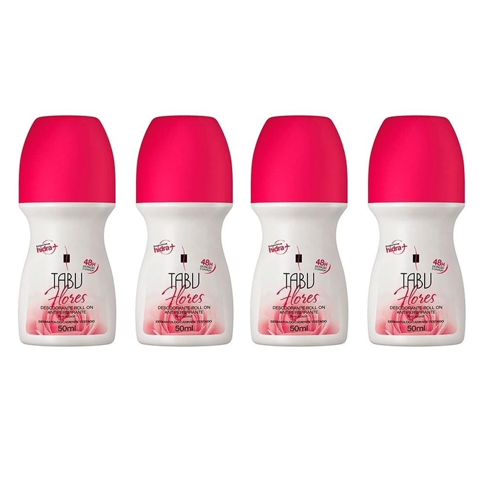 Kit Desodorante Roll-On Antitranspirante Tabu Flores 50Ml C/ 4 unidades