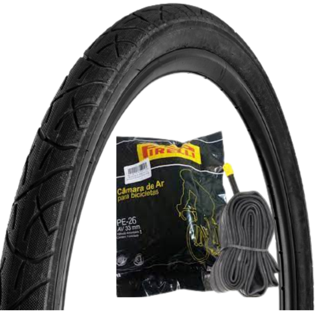 Pneu Para Bicicleta Aro 26x1.95 (50-559mm) Slick Veloce Modelo Praieiro VRB Lateral Reforçada + 01 Câmara Pirelli Aro 26.