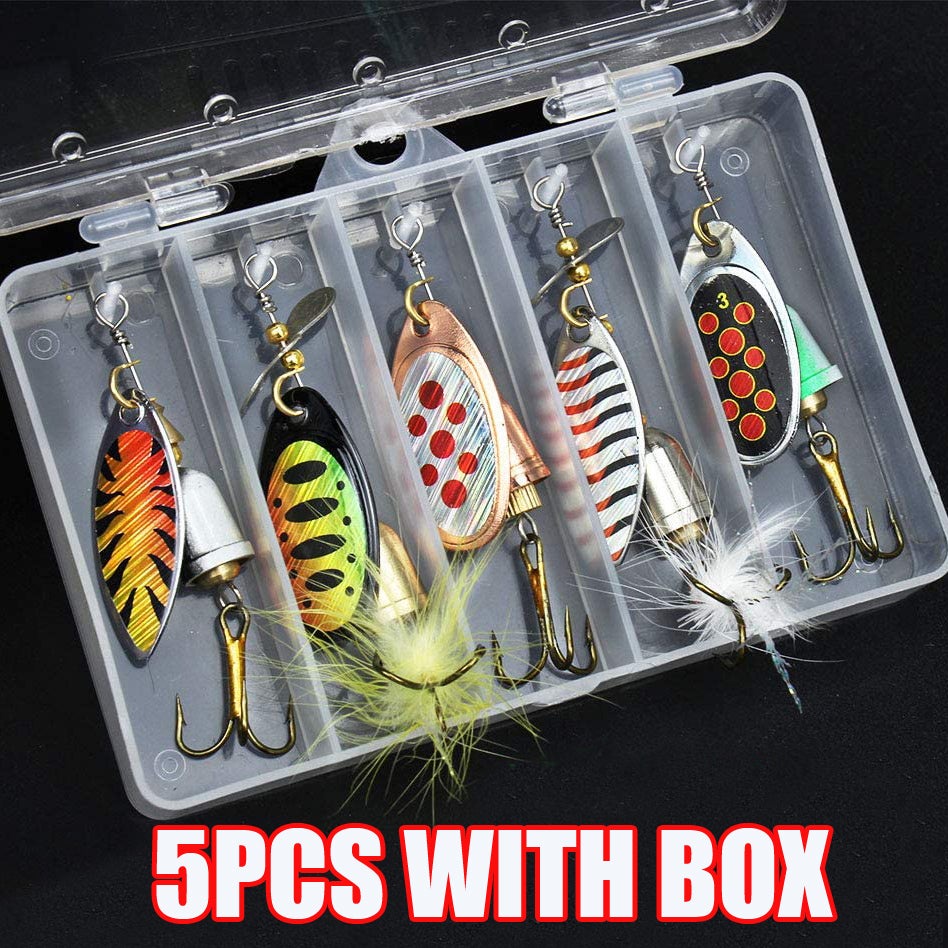 5 Pcs Spinnerbait Isca De Pesca De Metal Duro Iscas Spinner Kit Com Caixas De Enfrentar