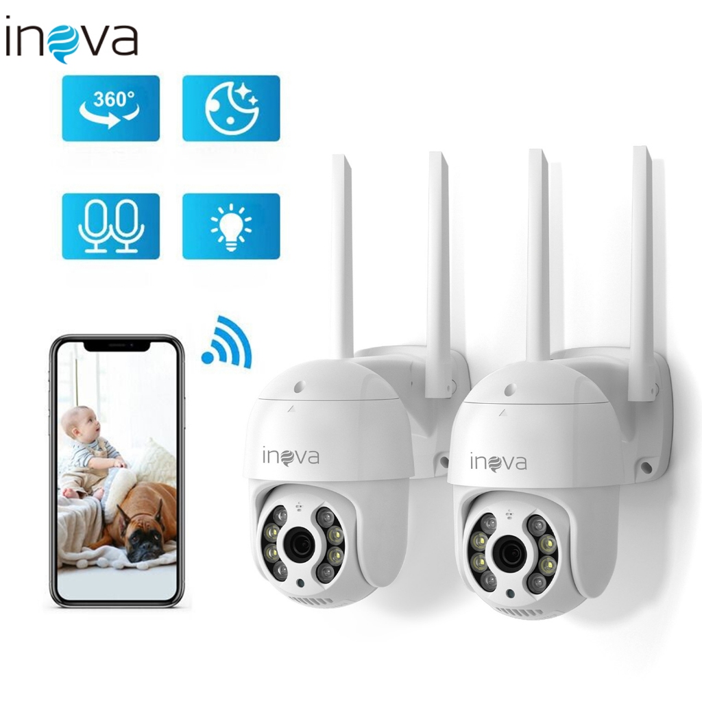 INOVA Kit Câmera de segurança a Prova D'água sem fio gira 360° HD1080P IP66 APP ICSee Wi-fi Externa