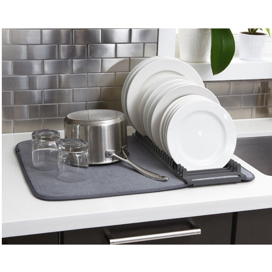 Escorredor De Louças 2 Em 1 Com Tapete Dobrável Absorvente Antiderrapante Microfibra Multifuncional