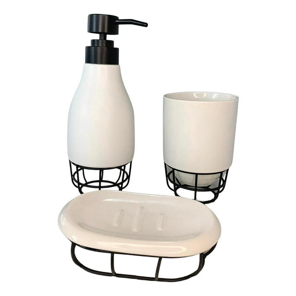 Conjunto 3 Peças Kit Para Banheiro Cerâmica - Preto E Branco