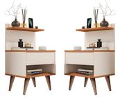 Kit Duas Mesas De Cabeceira Retrô Pés Palito Em Madeira Maciça 2 Gavetas E 1 Nicho - Verona - Off White Com Nature - Lojas GD