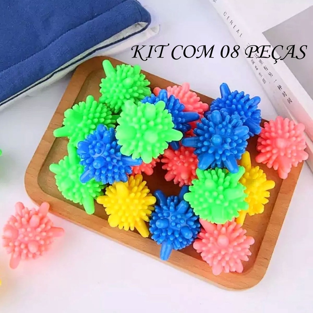 Kit 12 Esferas Bolinhas Bate Roupas Reutilizável Para Máquina De Lavar Tira Pelo