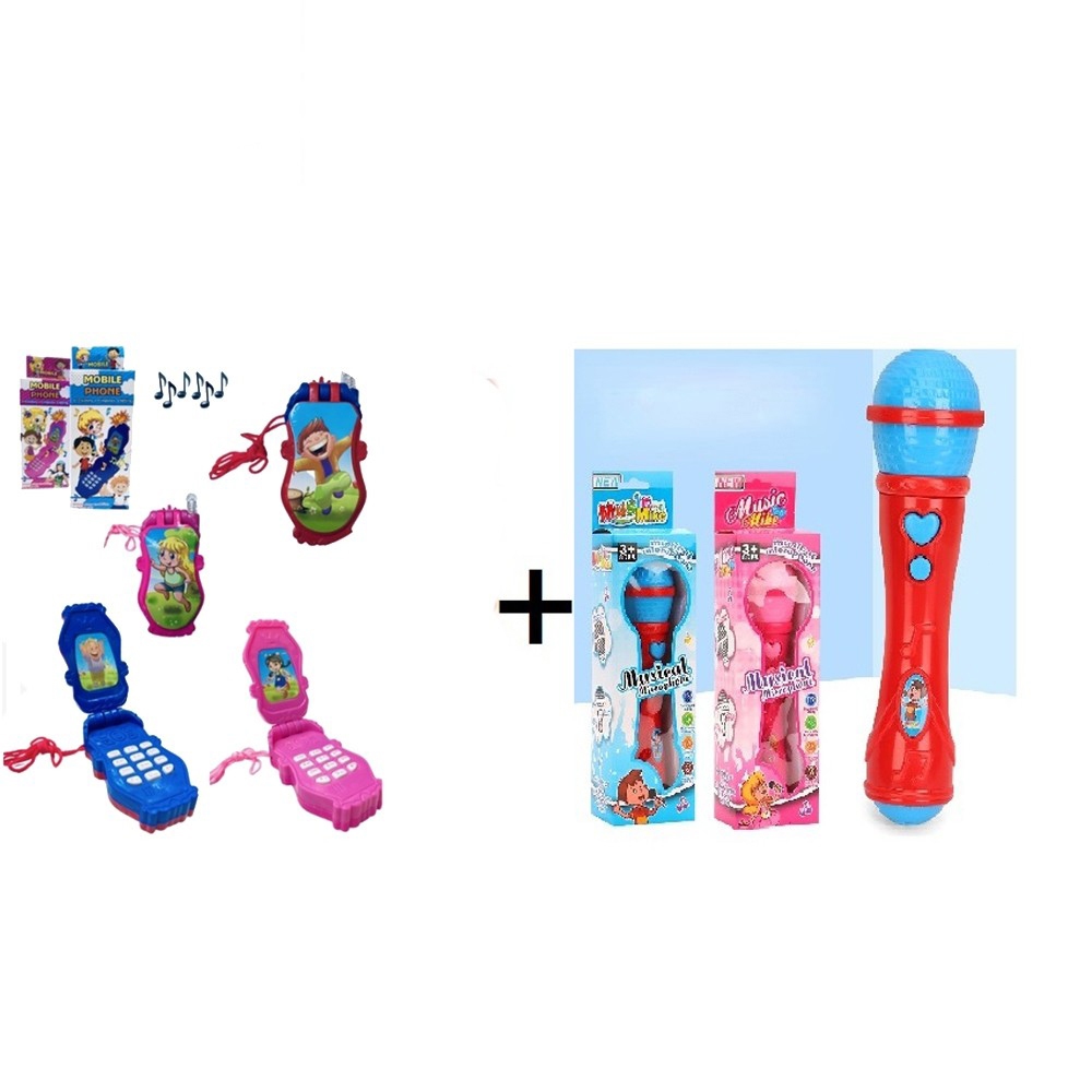 Botões Telefone e Microfone Infantil Com Som e Reproduz Voz Celular De Brinquedo Musical C/ Luz