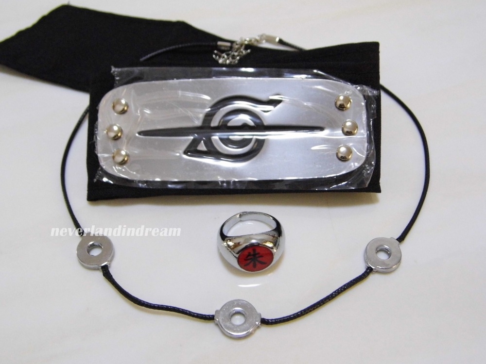 Naruto Akatsuki Uchiha Itachi's Cosplay Kit Anti-leaf Headband Necklace Ring Set