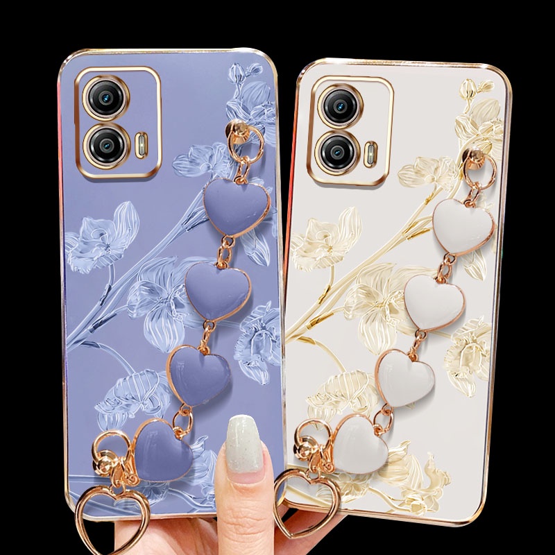 YBD Coreano Pequeno Fresco Estilo Capa De Celular Para Motorola Moto G53 G73 G13 G23 G32 G72 G84 G54 Linda Flor Bauhinia Padrão Com Pulseira De Amor