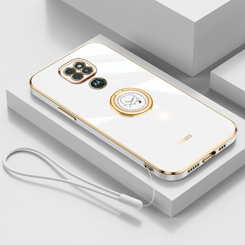YBD Capa De Silicone Ultra Fina Para Telefone Motorola Moto G9 Play G9 Plus G9 Power Deluxe Fall Protection Gold Band Com Anel De Relógio E Cordão