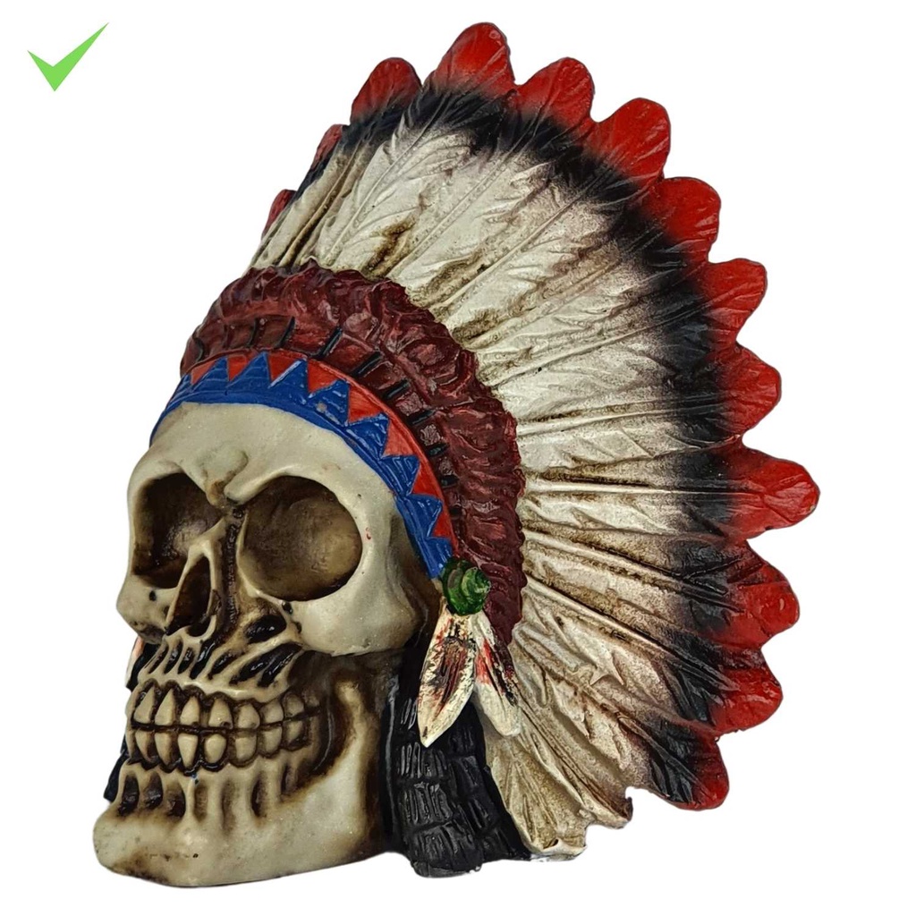 Caveira Indio Com Cocar Penas Halloween Decorativo Em Resina